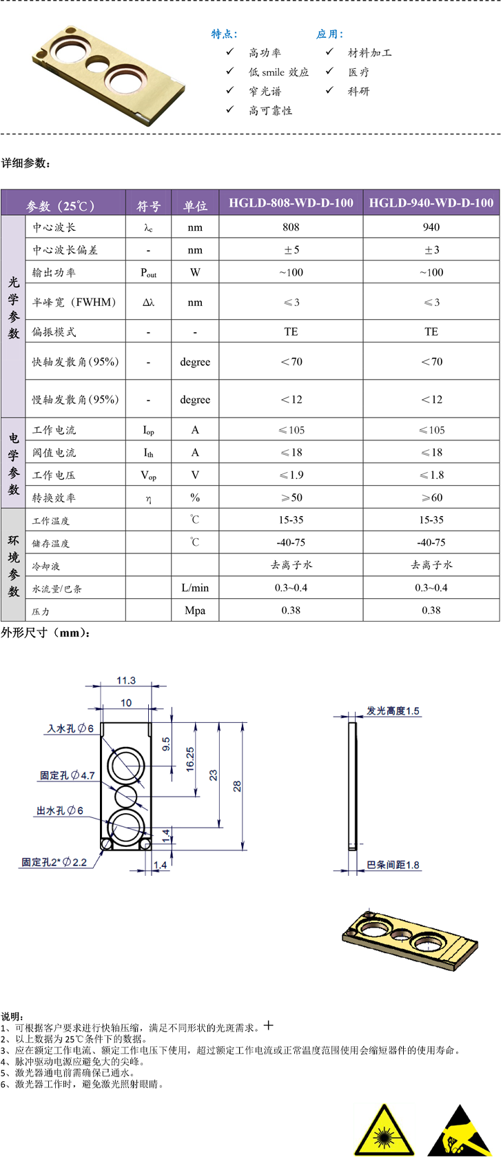 TM-HGLD-xxx-WD-D-100W微通道叠阵激光器