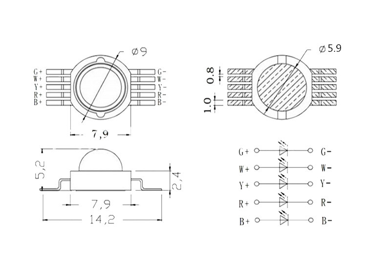 注:色温、发光颜色、亮度、功率均可按客户要求定制。