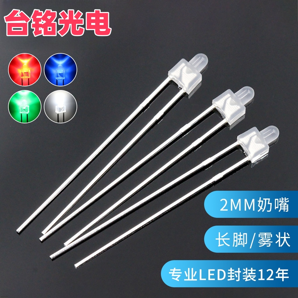 F2/2MM奶嘴雾状长脚发光二极管白光蓝光直插led灯珠