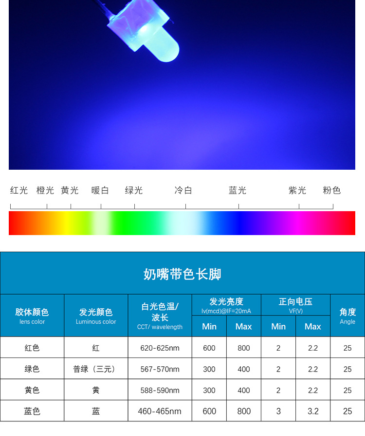 • 型号类型:奶嘴型(草帽头/圆头)直插LED