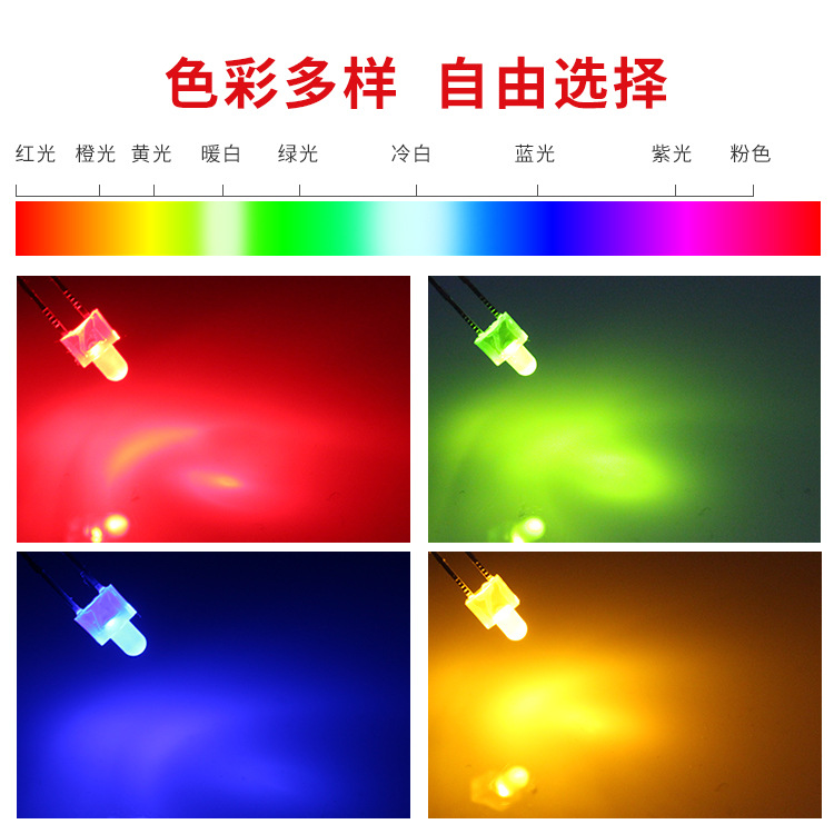 F2/2MM奶嘴带色长脚红发红光黄色蓝灯绿光LED灯珠