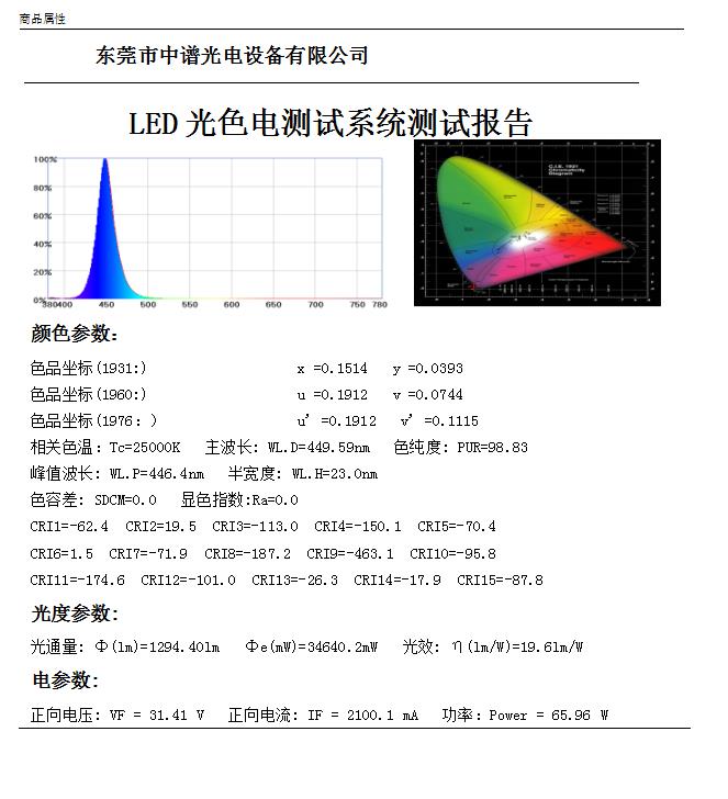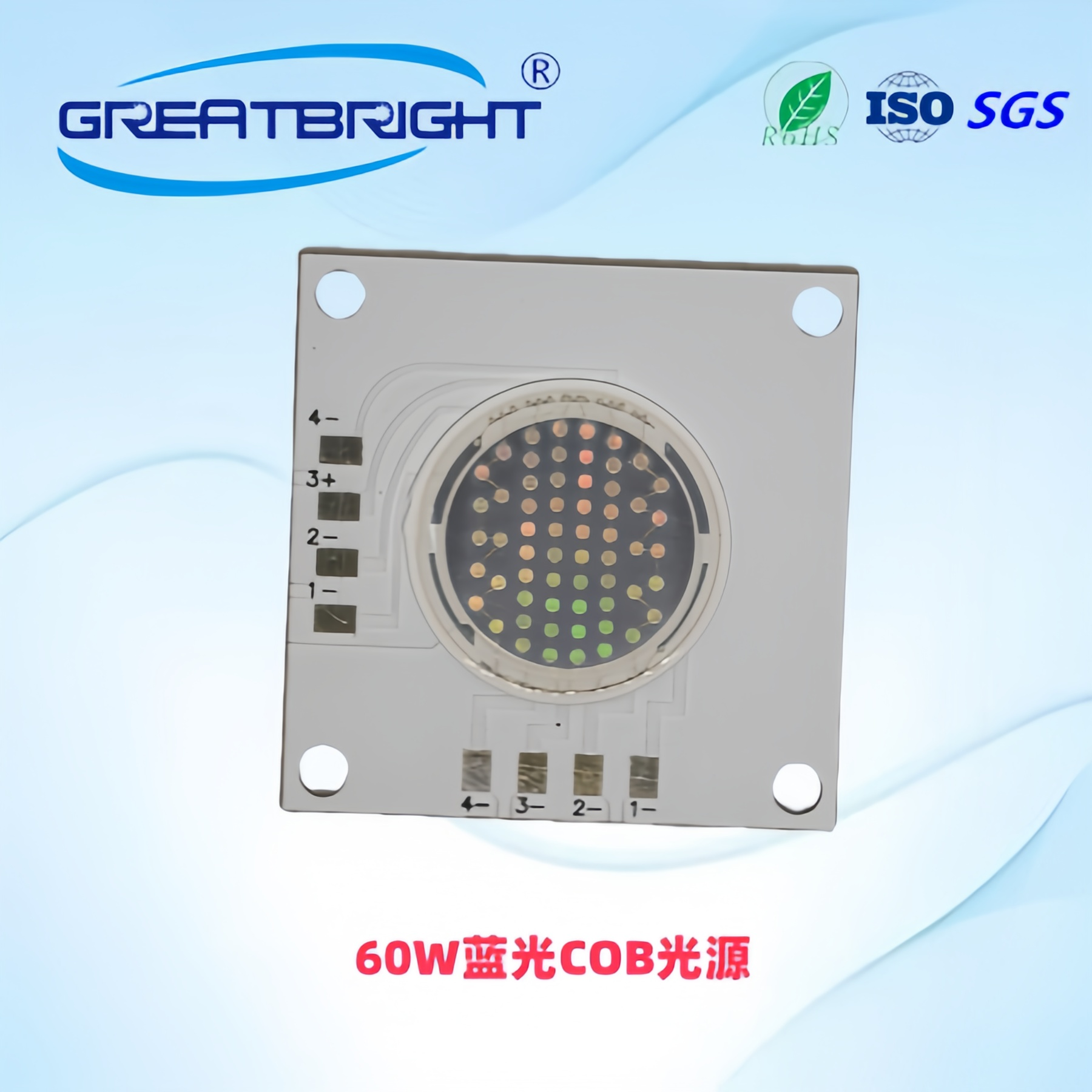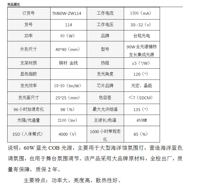 说明:60W蓝光COB光源,主要用于大型海洋馆氛围灯,营造海洋蓝色调氛围,