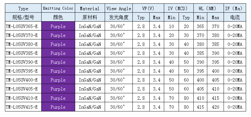 首页/产品/uv紫外LED系列/直插紫光LED灯珠