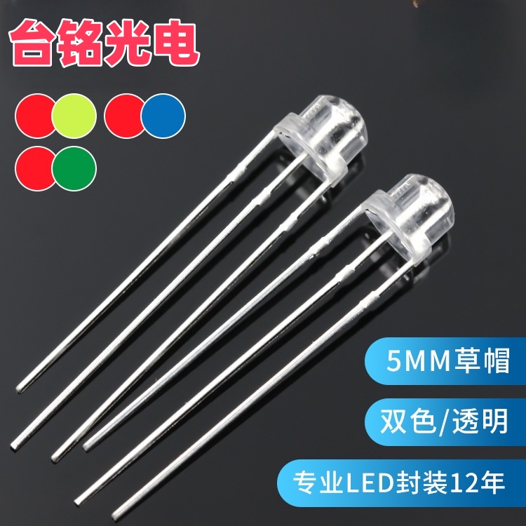 F5草帽双色灯珠红蓝红普绿红翠绿三脚