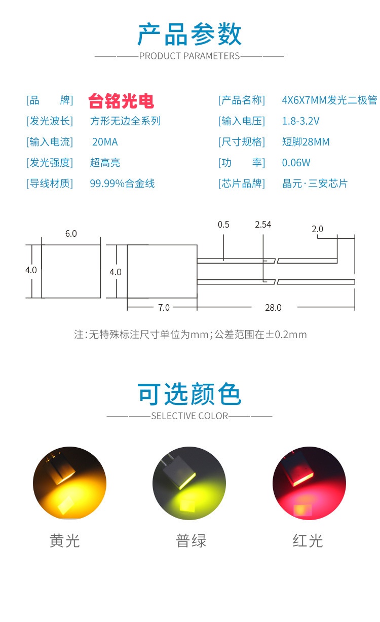 4X6mm长方形平面显示信号白壳 指示LED灯珠红黄蓝绿橙 led灯珠 立即咨询