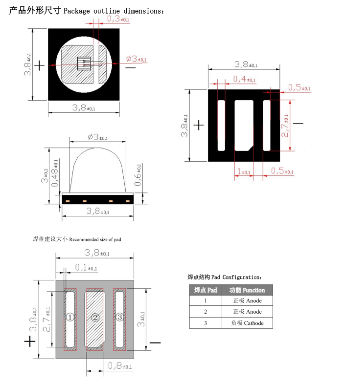 为了确保LED 光电性能,请保持LED 发光区表面清洁,避免手指印或其他异物覆盖。